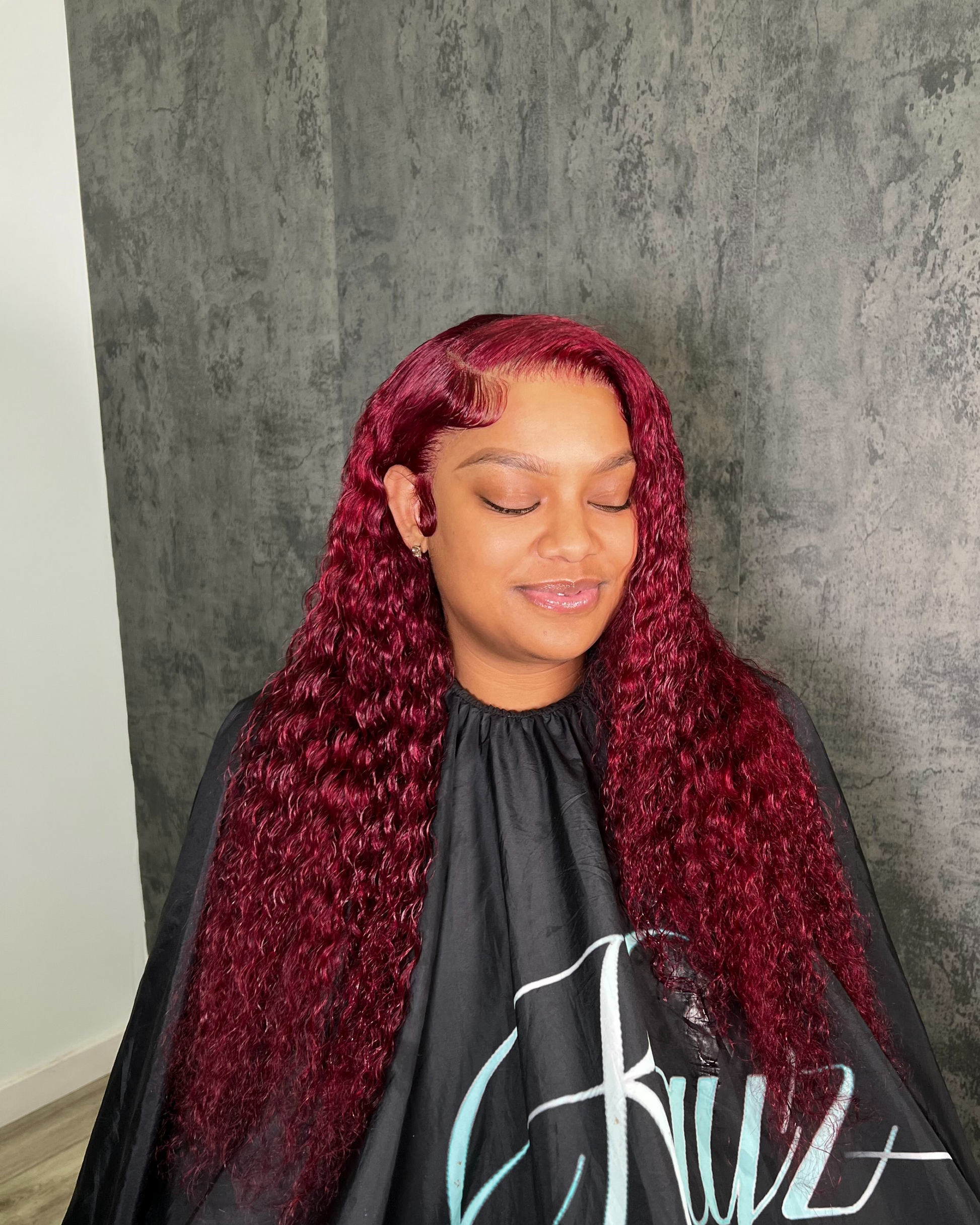 This Cherry Bomb wig unit features a 24 inch length, a dark red color, and a high density of 180%. It also comes with a 13x4 transparent lace for easy installation. This unit has been pre-plucked and pre-styled for your convenience.